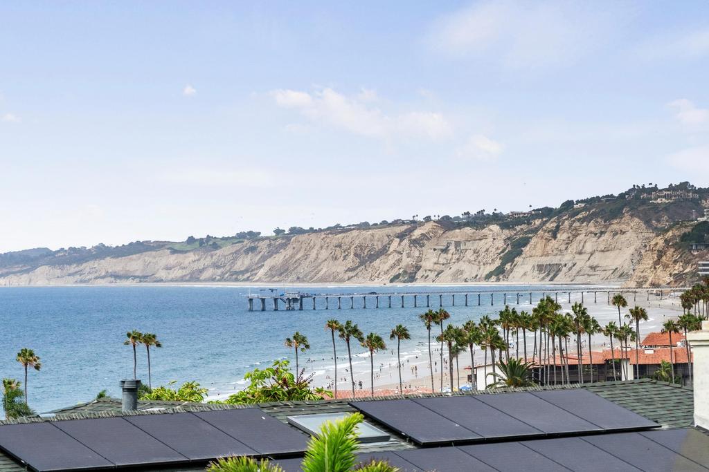 Homes in this sought-after location rarely come to market! In a highly coveted site just above La Jolla Shores' picturesque whitewater surf coastline and North Shore, this lovely classic residence can be easily updated to maximize enjoyment of its superb location and sweeping ocean views. Just steps to the La Jolla Beach & Tennis Club and Shores Village shops and restaurants, bright bay windows, gleaming hardwood floors, a wonderful staircase with handcrafted custom wood banister, and fresh woodwork and cabinetry provide a perfect backdrop for your style. A soaring natural wood open-beam ceiling with fireplace and windows opening to the expansive patio and mature gardens, and while friends and family will naturally gravitate toward the sea side views of the residence, the serene and spacious back patio offers another relaxing spot for dining and entertaining al fresco.