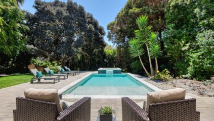 On a vast, private La Jolla Shores site with gently sloping lush, park-like grounds, this expansive mid-century home invites indoor-outdoor living in a superb neighborhood with ready access to all sides of La Jolla and its Village, beaches, Shores Village and easy freeway access points. Designed around a large center courtyard, the residence offers horizon ocean views, open beam and raised ceilings, walls of glass opening to the outdoors, spacious living areas and absolutely spectacular grounds with picturesque mature trees, pool, spa, an outdoor cabana, a fruit tree orchard area and even a putting green. Endless opportunity to make your dream residence come true.
