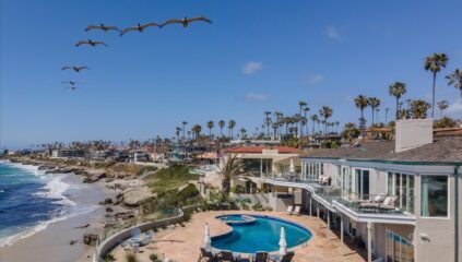 SANDY BEACHFRONT with superlative privacy and panoramic coastal views! Set above the sand in Lower Hermosa, this spectacular waterfront home welcomes into a broad gated courtyard, ready to draw gasps of awe from all who enter to walls of glass opening to forever sea views and a huge back patio with pool and spa and fire pit. Enjoy dazzling, ever-changing surf, coastline, open sea, sunsets, wildlife migrations and moon glades but with exceptional privacy... a rare combination indeed. Fresh, bright, and ready, this magnificent property represents an extraordinary value in a priceless, coveted location within a short stroll to renowned surf breaks, Village and Bird Rock Village's lovely shops, cafes, wine bars and fine restaurants, with plenty of room for gathering family and friends to share this magnificent marine environment. A treasure.