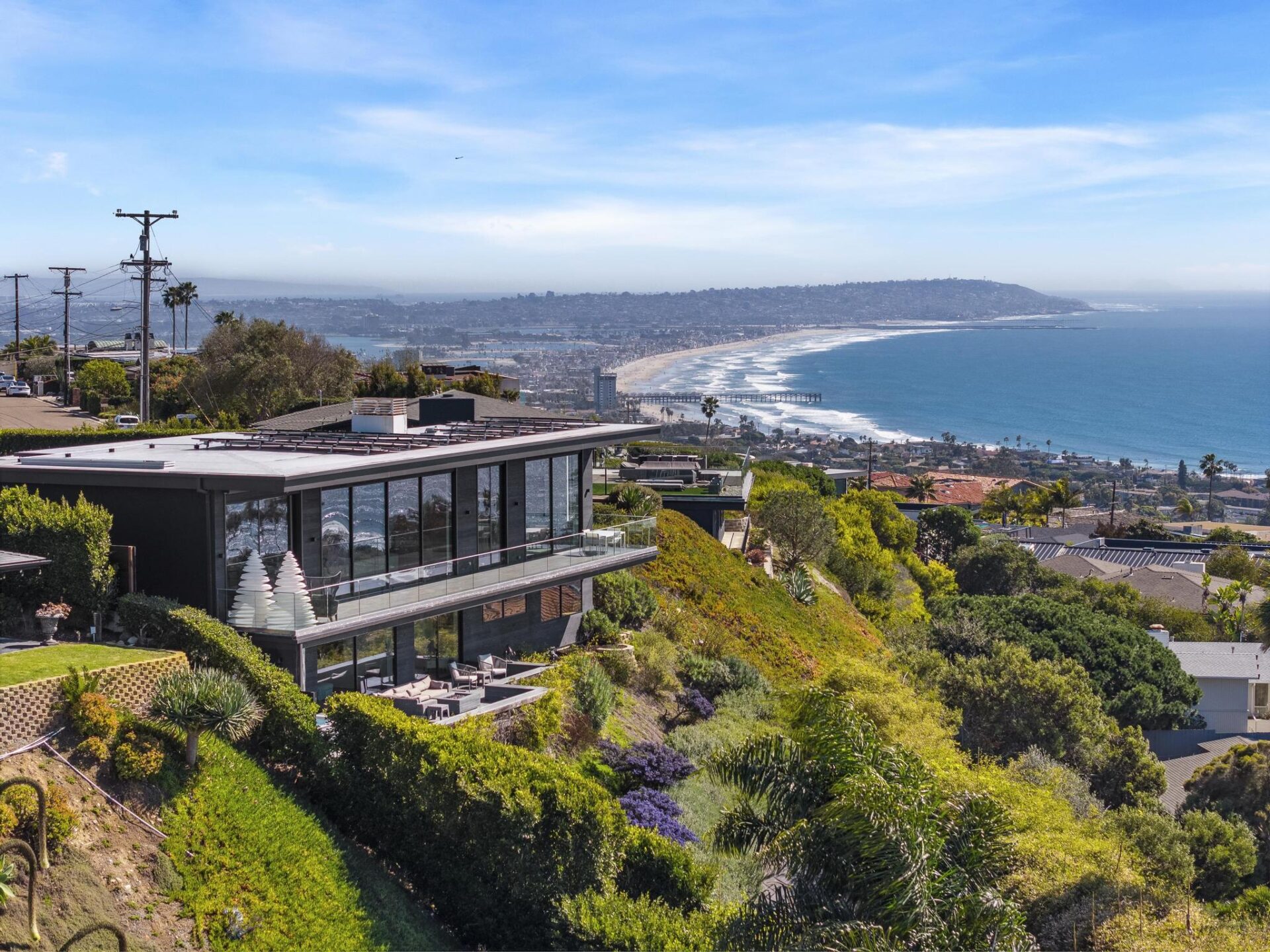 A masterpiece of modern architecture this extraordinary Muirlands view residence was designed as the personal home of esteemed MC2 Design Studio with fastidious attention to aesthetics and functionality. Commanding a rare and breathtaking site, the property showcases panoramic whitewater, coastline, and open-sea views that stretch beyond Bird Rock and Upper Hermosa. Seamlessly integrating sleek, contemporary design with nature’s ever-changing environment, skylights and vast walls of glass stack to immerse this residence in a dynamic canvas of morning light, fiery sunsets, and luminous moonglade nights. Every inch of the immaculate interior is meticulously curated to embrace the elements —from the drama of incoming storms to the serene passage of migrating whales. Vast view decks, spa, fire feature, and barbecue continue interior living outside, and Accoya wood siding and complete interior sprinkler systems ensure maximum fire safety. Valuable discontinued tiles by pop artist, Keith Haring, add a touch of whimsy to what is a singular offering of sophistication, tranquility, and awe-inspiring beauty. More than a home, this residence is a serene experience in living well.